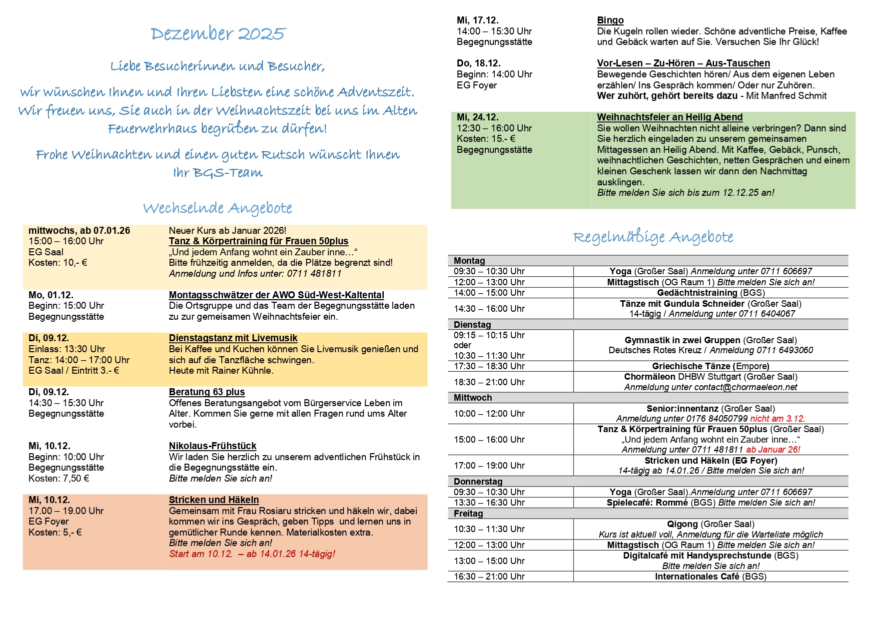 Regelmäßige Angebote