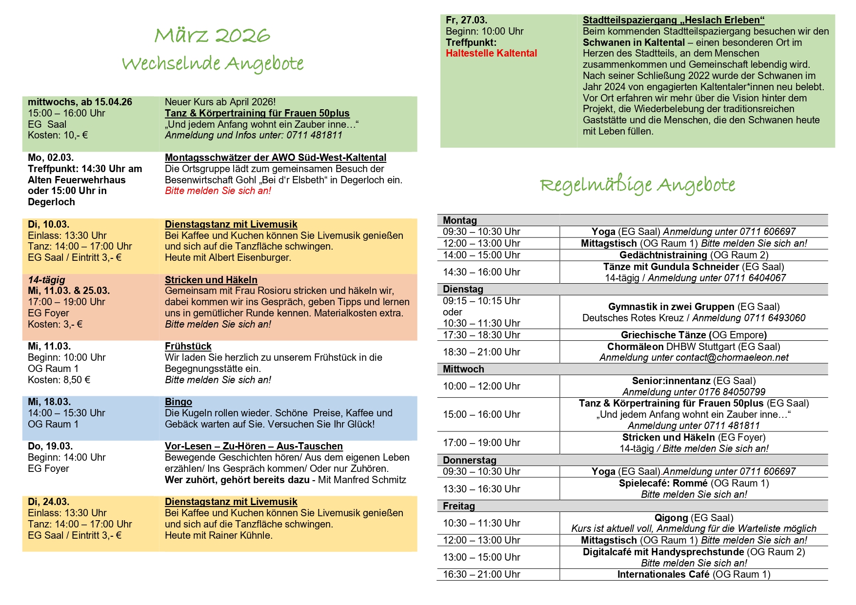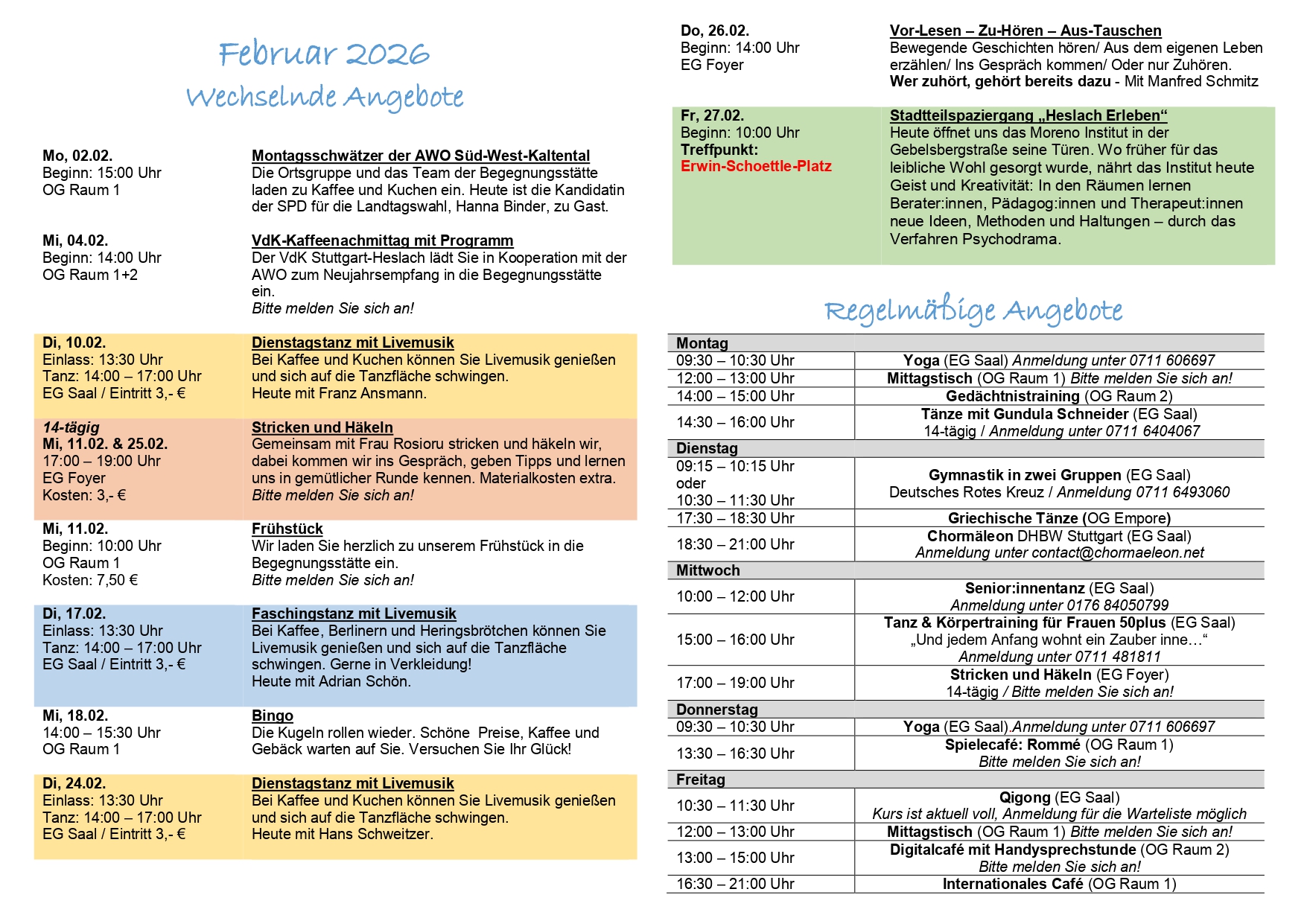 Schauen Sie sich das aktuelle Monatsprogramm des Begegnungs- und Servicezentrum im Februar und März 2026 an. Wir haben wieder viele abwechslungsreiche Angebote zusammengestellt. Sicherlich ist auch etwas für Sie dabei!