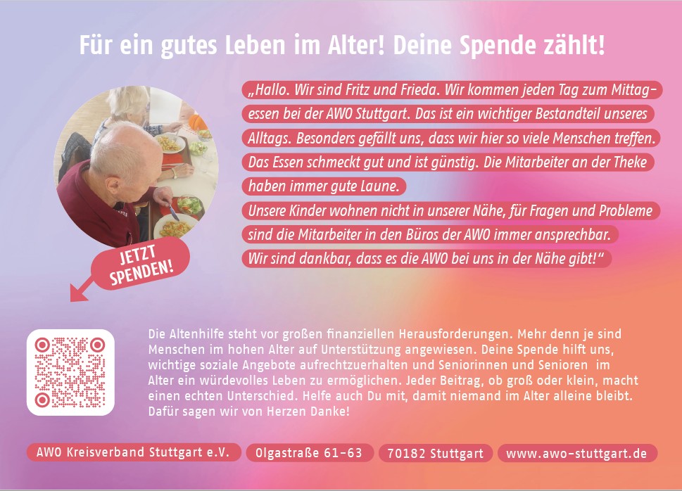 Unter diesem Motto steht die diesjährige Spendenaktion der AWO Stuttgart.