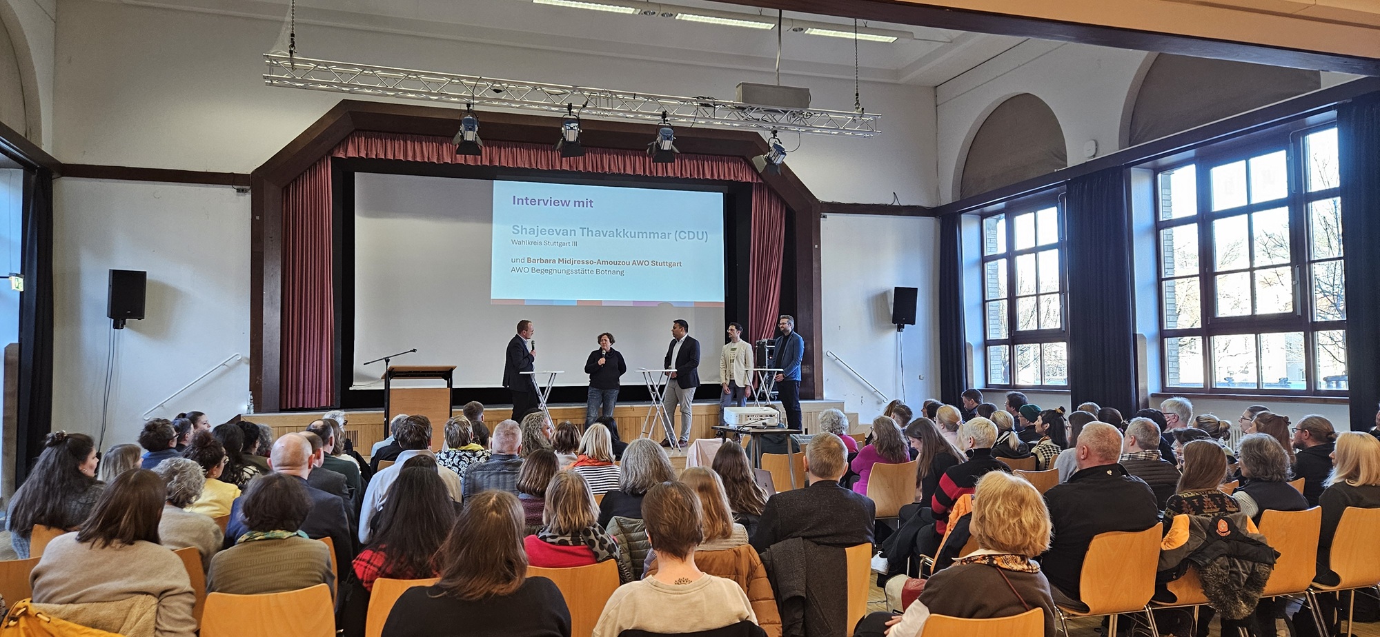 Vier der fünf zur Landtagswahl Kandidierenden aus verschiedenen Stuttgarter Wahlkreisen hatten in den Wochen zuvor bei einem Liga-Träger eine kurze Hospitation absolviert und berichteten von ihren Eindrücken der sozialen Arbeit vor Ort: in einer Begegnungsstätte, im Asylbüro, in der Suchtprävention und in einer Wohnanlage für Behinderte.